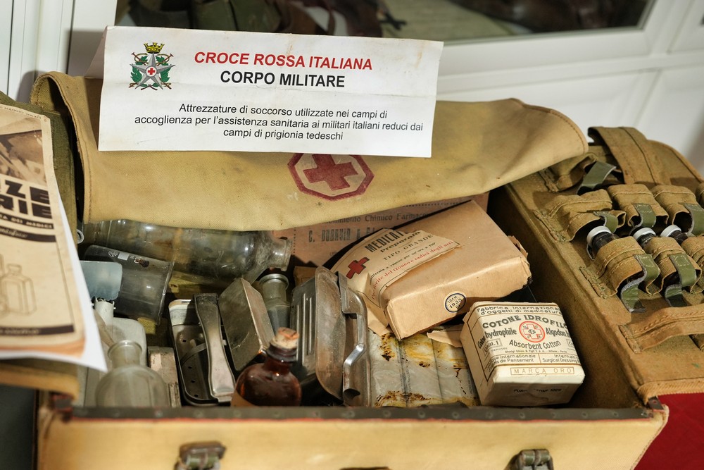 Il museo espone anche una varietà di altri oggetti, tra cui telegrafi, una radio d’epoca, moschetti e baionette della Prima Guerra Mondiale, medaglie al valore e persino una valigia di soccorso con un manuale di chirurgia d’urgenza, che evidenzia le difficili e crude condizioni affrontate al fronte.