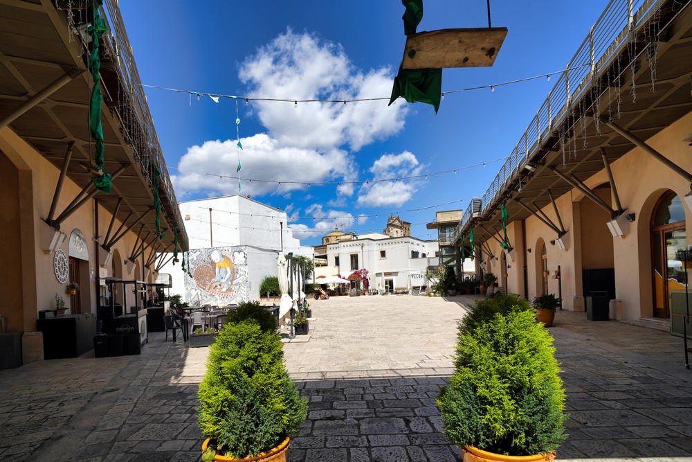Dal 1920 al 2005, la piazza ospitò l’edificio del mercato coperto, un punto di riferimento per la vita commerciale cittadina. Oggi, questo spazio è stato sapientemente recuperato e riutilizzato per ospitare diverse attività commerciali e artigianali, trasformando la piazza in una vivace location per eventi culturali, che continua a pulsare nel cuore della città.