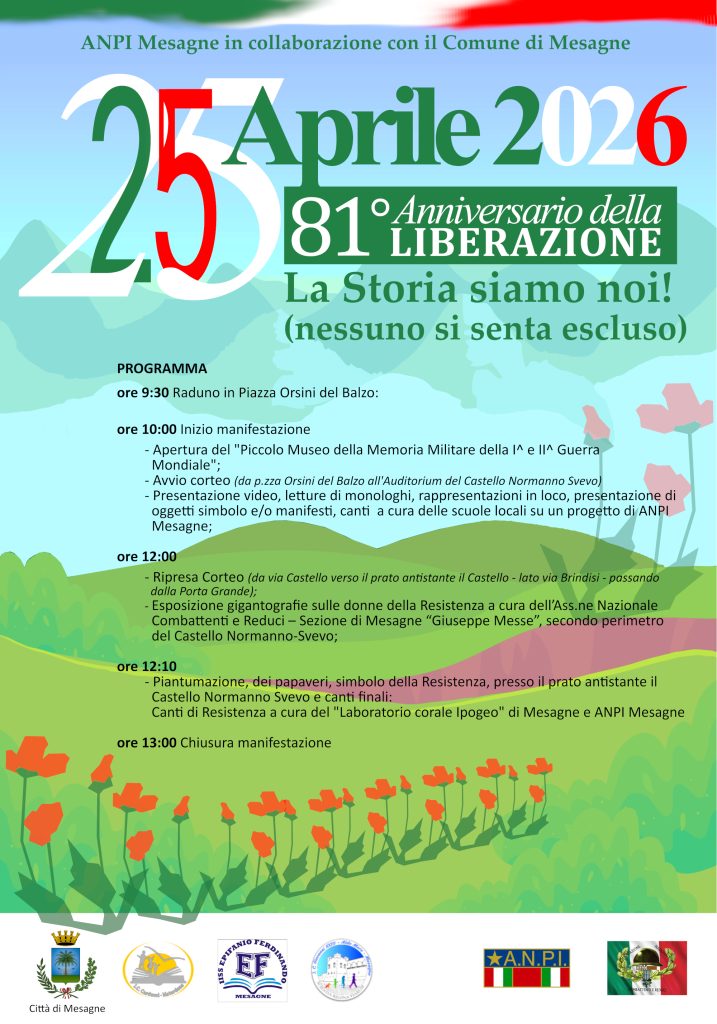 A Mesagne celebriamo l’81° Anniversario della Liberazione con una mattinata fatta di persone, voci, musica, immagini e gesti simbolici. Un momento per ricordare da dove veniamo, ma soprattutto per chiederci dove vogliamo andare.